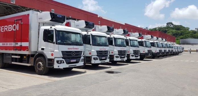 Os caminhões Mercedes-Benz, equipados com carroçaria frigorífica, atuam na logística e transporte entre as unidades de produção e os pontos de comércio. “Nesse atual ciclo de renovação de frota, que resultou nos 40 caminhões da marca, pesquisamos muito e até fizemos benchmarking com empresas do setor, que nos indicaram os Mercedes-Benz como ideais para nossas operações”, informa Miguel Zaidan, diretor executivo da Masterboi.