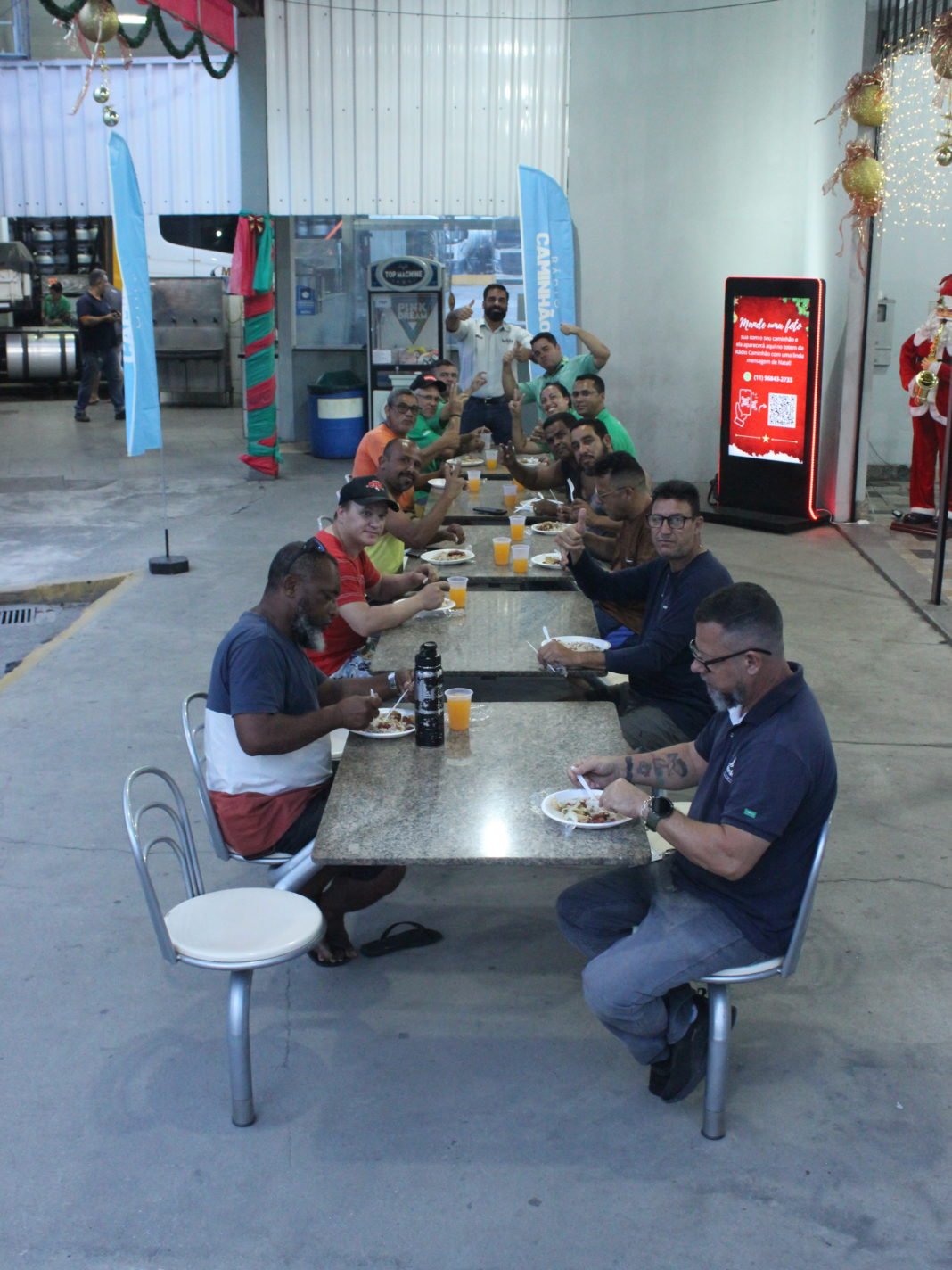 Na última quinta-feira, 23, a Rádio Caminhão e o Posto Arco-Íris de Roseira iniciaram as celebrações de Natal para caminhoneiros(as) e suas famílias com um jantar especial. O evento, que marca os 30 anos da Rede Arco-Íris, homenageia os trabalhadores(as) do setor de transporte rodoviário de cargas, reconhecendo o trabalho árduo que fazem durante o ano, especialmente durante o período natalino. Motoristas, cristais e crianças se reuniram para celebrar o início da época natalina.